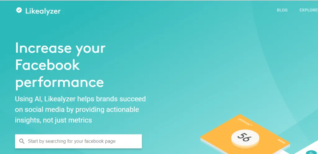 It’s a free tool that analyzes your Facebook page and tells you where you can improve. You can enter your Facebook page URL, and Likealyzer will generate a report and provide feedback in seconds. They review the amount of information, activity levels, responsiveness, and engagement you provide on the web.