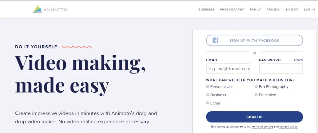 An easy-to-use video editing platform, great for creating content or ads for your Facebook page. They provide customizable video templates for seasonal sales, how-tos, advertising, and promotions. You can add your own images and video clips to create a video and then share the video directly to Facebook from the Animoto platform.