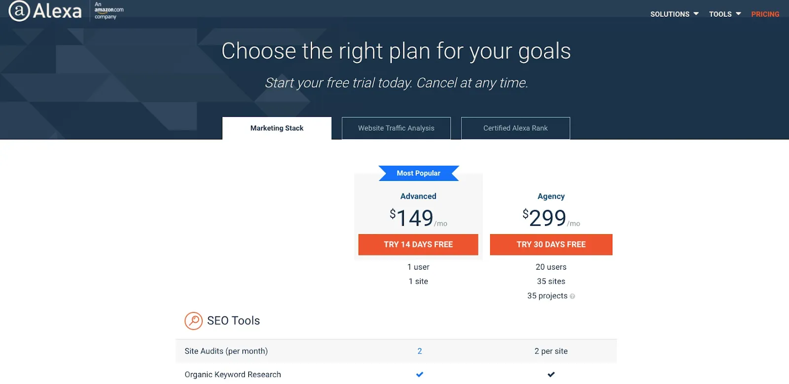Pricing: Semrush starts at $99 per month
