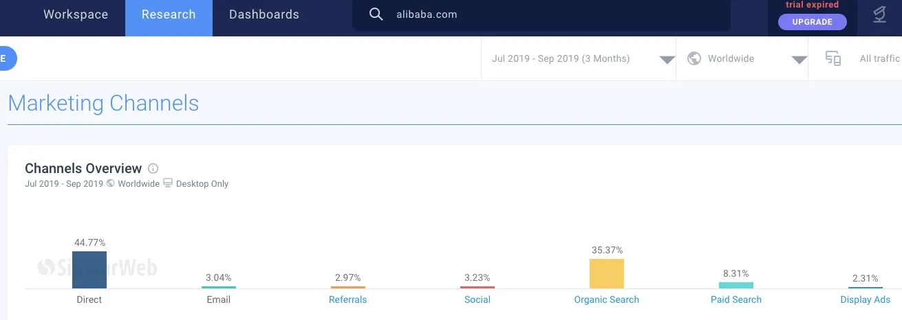 In Social Traffic, we can see that the main source of traffic for Alibaba social media is Facebook.