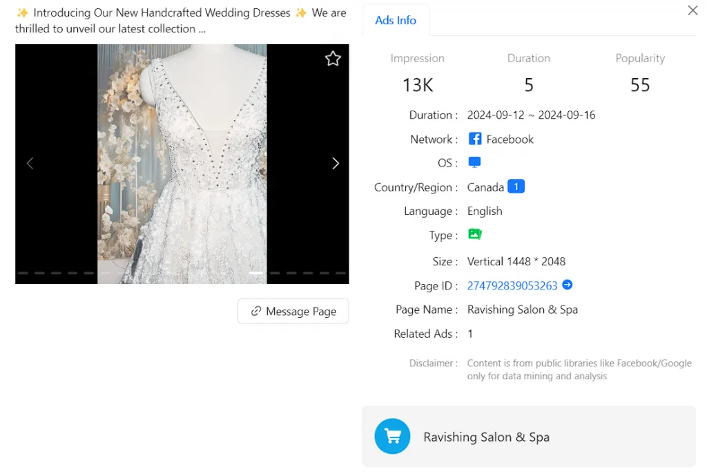 The reason why ads for handmade wedding dresses are more attractive and generate more traffic lies in their ability to convey uniqueness and high quality through the keyword "handcrafted," evoking emotional resonance among consumers. The ads emphasize that each wedding dress is a meticulously crafted work of art made by skilled artisans, highlighting every detail to leave a lasting impression of the product's elegance and distinctiveness.