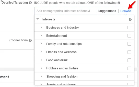 If you want to Implement Interest Targeting on Facebook, Type in relevant keywords related to your target audience's interests. Facebook will suggest related topics that you can select. For example, if you’re advertising running shoes, you might target interests like “Running,” “Marathons,” and “Fitness.”