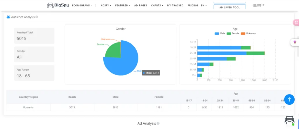 You can check your competitors' ad audiences and demographics on BigSpy. This will help you optimize your ad targeting on Facebook Ads.