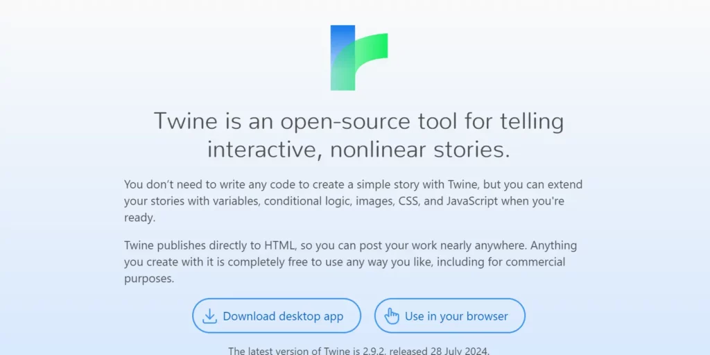 Twine is an open-source tool that allows users to create interactive, non-linear stories. Popular among writers, game designers, and educators, Twine is ideal for creating text-based games or interactive fiction. Its drag-and-drop interface makes it accessible to beginners, while developers who want more control can extend functionality using HTML, CSS, and JavaScript.