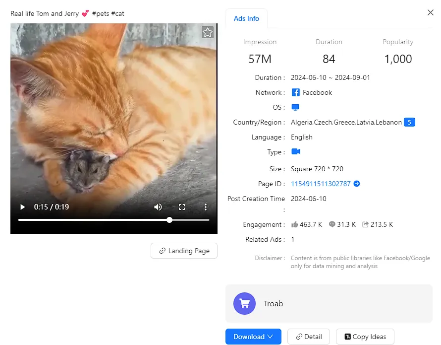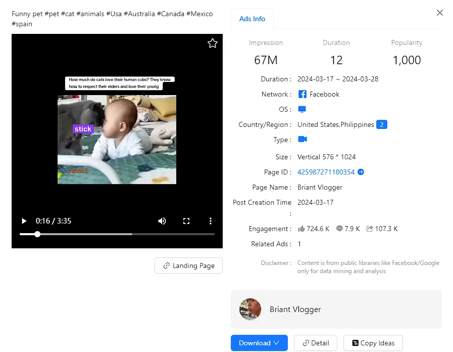 These data highlight the appeal of the expanding pet market to pet product manufacturers. How to use pets as the core to create more business opportunities and attract more attention from the consumers? BigSpy helps you search for popular pet-related ADs from the global advertising market, and also provides you the best strategy and the most valuable reference.