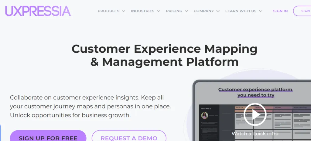Uxpressia is a customer journey mapping tool that helps businesses visualize and improve customer experiences. It offers templates and collaboration features for effective mapping, allowing teams to create detailed journey maps, personas, and impact maps. By providing a clear and comprehensive view of the customer experience, Uxpressia helps organizations enhance their customer-centric strategies and drive better outcomes.