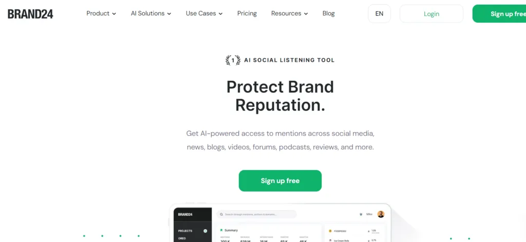 Brand24 is an AI-powered social listening tool designed to help brands monitor and manage their online presence. It offers comprehensive features such as real-time tracking of mentions across various online platforms, advanced sentiment analysis, and detailed reporting tools. Brand24 helps businesses measure brand awareness, analyze competitors, and gain valuable customer insights. With support for 108 languages and access to over 25 million online sources, it provides reliable metrics to improve marketing strategies and protect brand reputation.