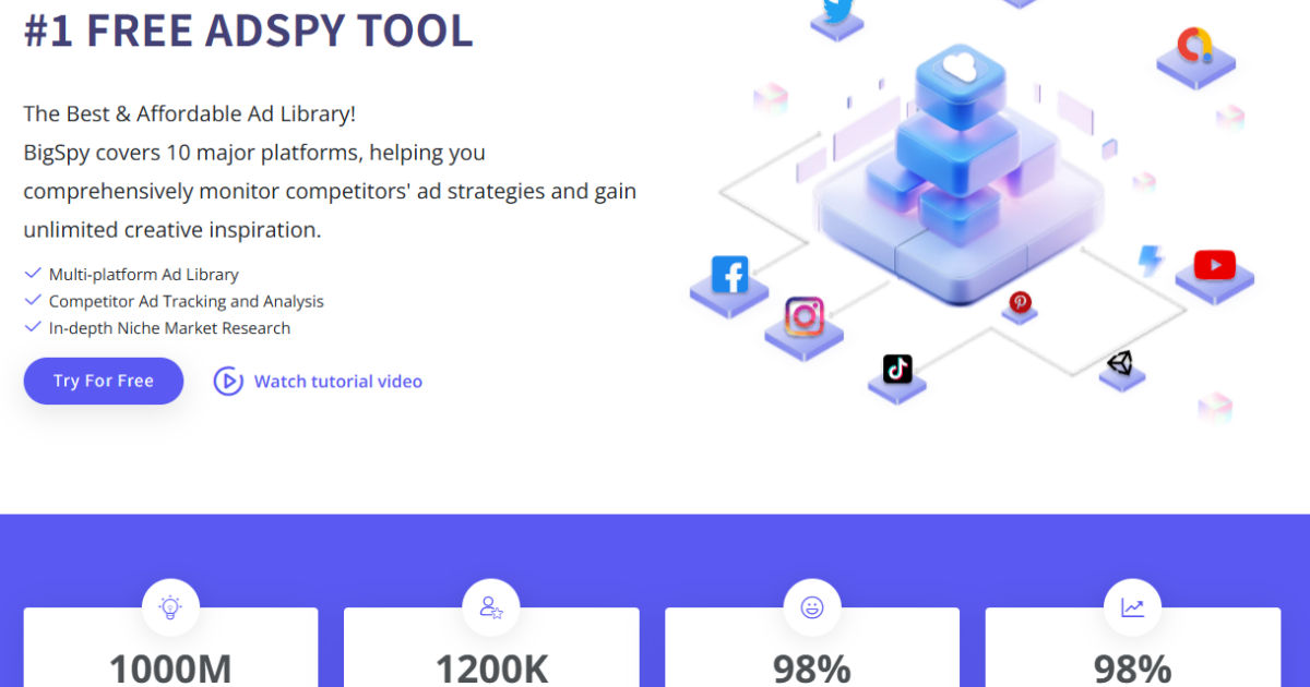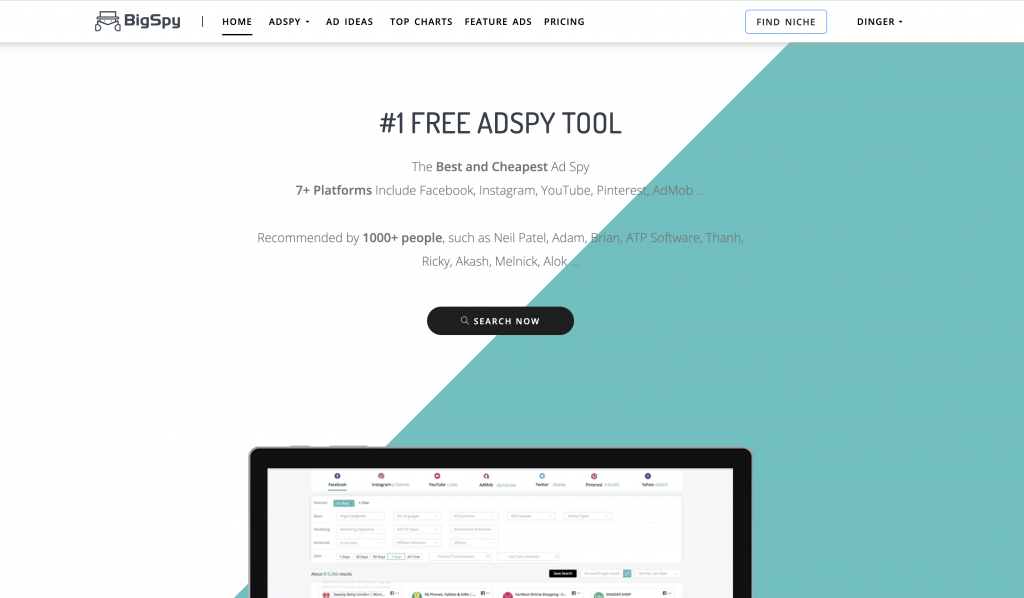 BigSpy is an ad spy tool for people to draw creative inspirations for their new marketing campaigns. As a huge database covering more than 1,000,000,000 ads from 9 mainstream platforms, it typically serves with two functions, searching and tracking.