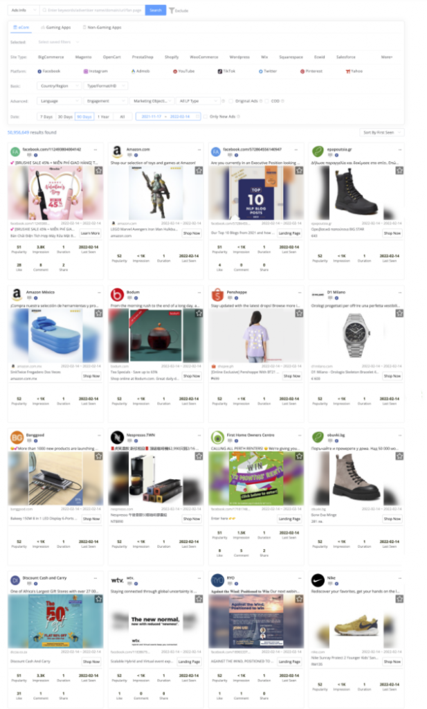 BigSpy是一个巨大的广告资料库,它可以让你通过巨量的广告创意数据发现市场中潜在的竞争对手或者已知的竞争对手。通过查看竞争对手,掌握和调整自己到市场中应该做的策略。